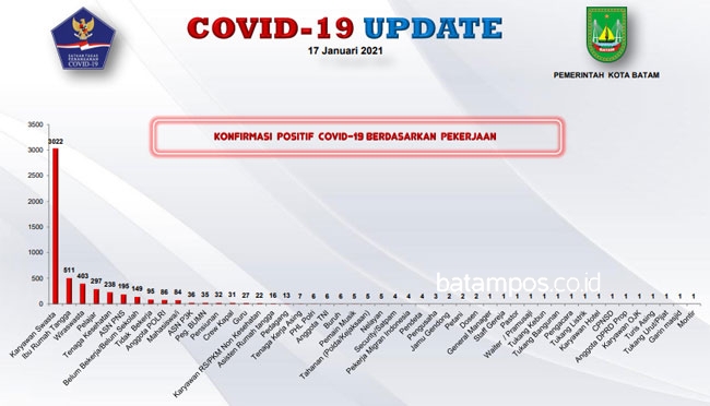Dilansir dari website lawancorona.batam.go.id diketahui jumlah pasien Covid-19 di Batam paling banyak menyerang karyawan swasta.