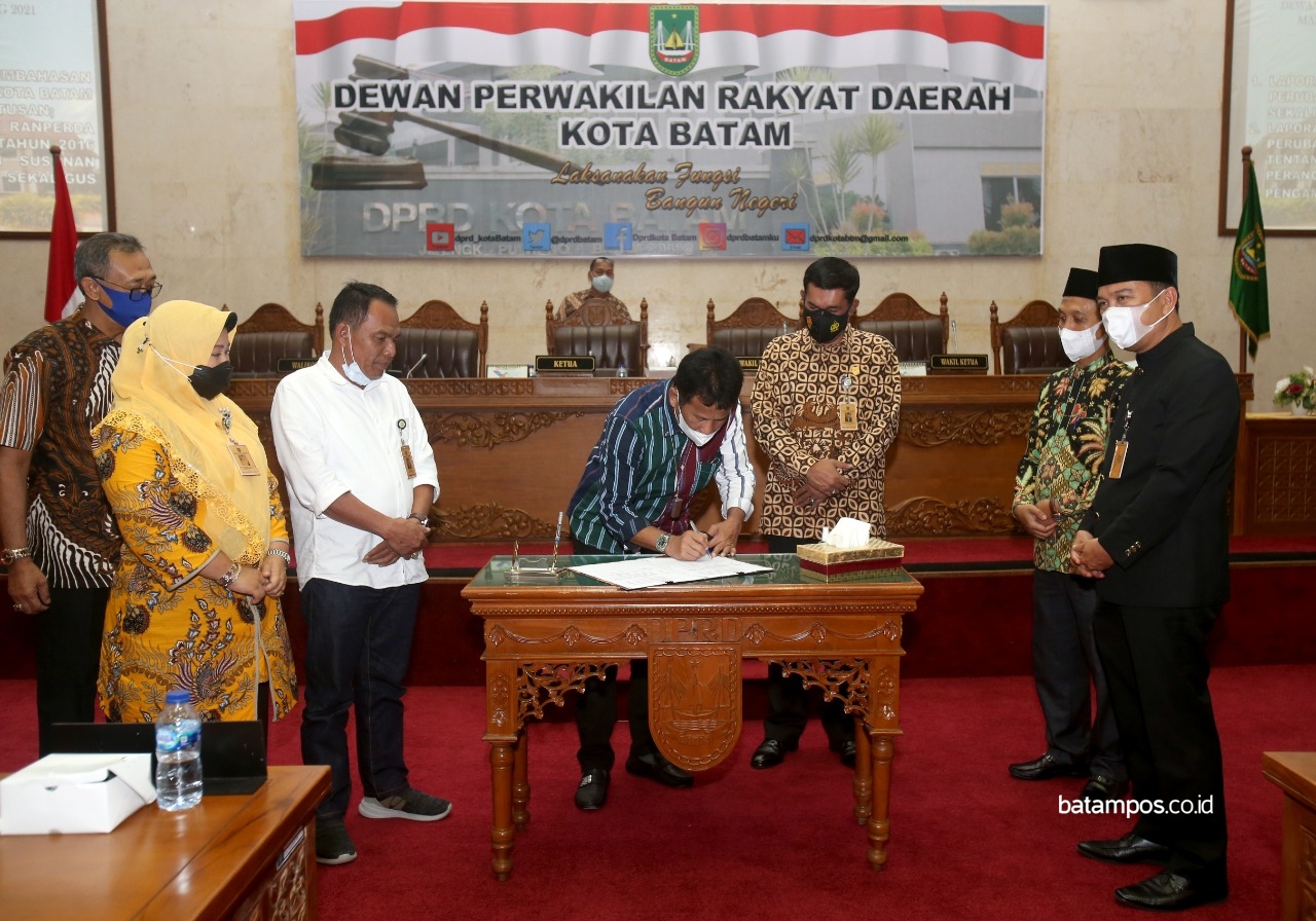 batampso.co.id – Pemko Batam dan DPRD Batam menyepakati Rancangan Peraturan Daerah tentang perubahan atas Peraturan Daerah (Perda) Kota Batam Nomor 10 tahun 2016 tentang pembentukan dan susunan perangkat daerah menjadi Peraturan Daerah (Perda).