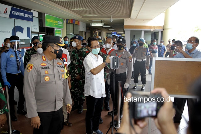 Amsakar bersama Kapolresta Barelang, Kombes Yos Guntur, juga meninjau langsung penerapan protkes di bandara.