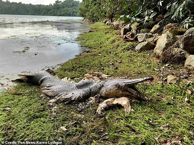 Penampakan ikan itu terlihat seperti buaya dan terdampar di pinggir waduk di Singapura.