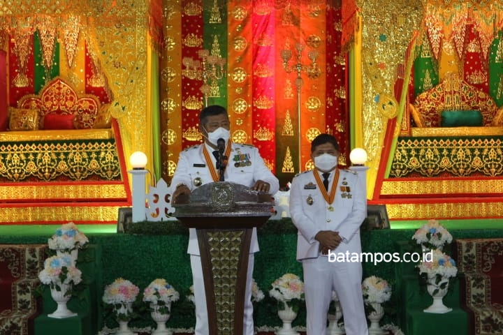 batampos.co.id – Bupati dan Wakil Bupati Kepulauan Anambas, Abdul Haris dan Wan Zuhendra menjalani proses Tepuk Tepung Tawar di Gedung BPMS Tarempa pada, Sabtu (6/3/2021) oleh Lembaga Adat Melayu ( LAM) di daerah ini setelah resmi dilantik menjadi Bupati dan Wakil Bupati Kepulauan Anambas.