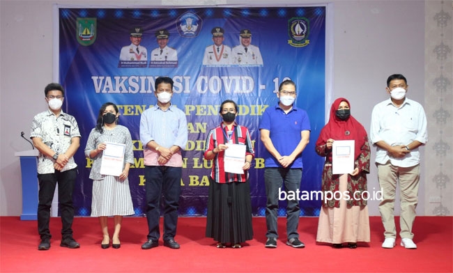 Vaksinasi para tenaga pengajar tersebut ditinjau langsung oleh Wali Kota Batam, Muhammad Rudi.