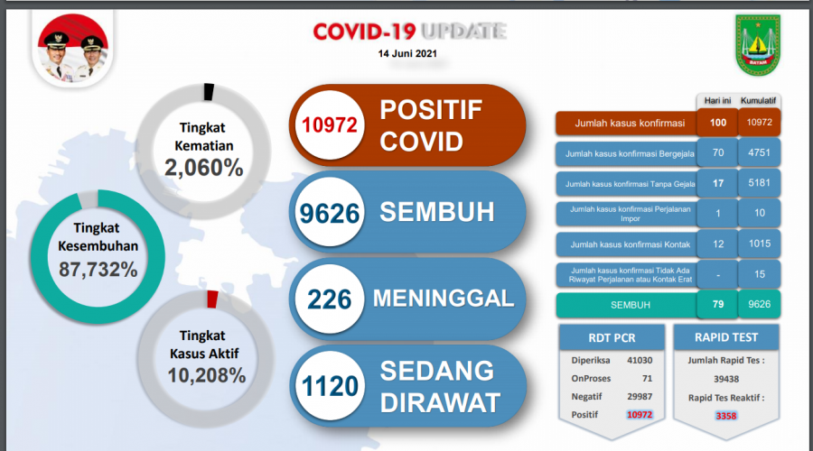 Dengan penambahan tersebut total jumlah pasien Covid-19 di Kota Batam mencapai 10.972 orang.