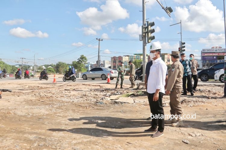 batampos.co.id – Wali Kota Batam, Muhammad Rudi, meninjau perkembangan penataan Simpang Basecamp dan Simpang Tembesi, Kamis (17/6/2021).