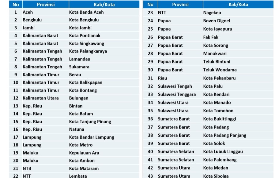 Rincian Kabupaten/ Kota tersebut adalah sebagai berikut: