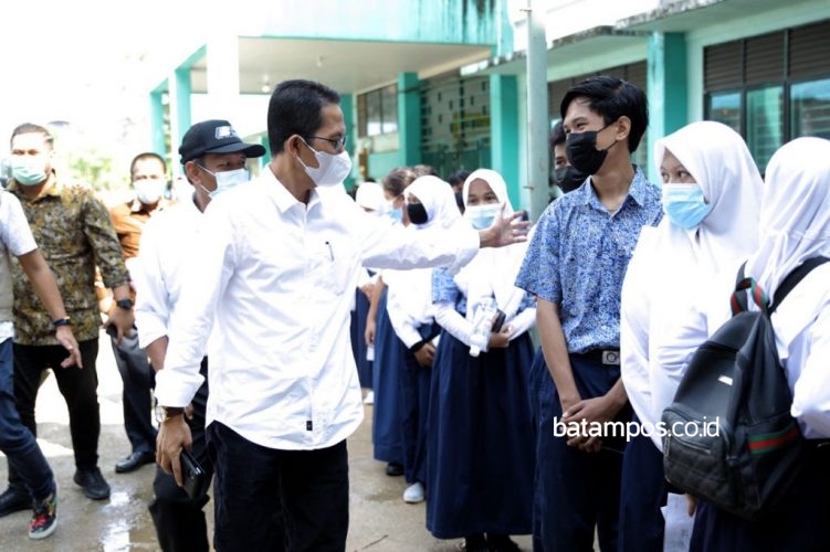 Wakil Wali Kota Batam, Amsakar Achmad, menyapa para siswa yang akan menjalani vaksinasi Covid-19. Foto: Pemko Batam