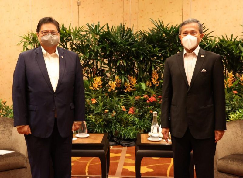 Menteri Koordinator Bidang Perekonomian Airlangga Hartarto bersama Menteri Luar Negeri Dr Vivian Balakrishnan. (istimewa)