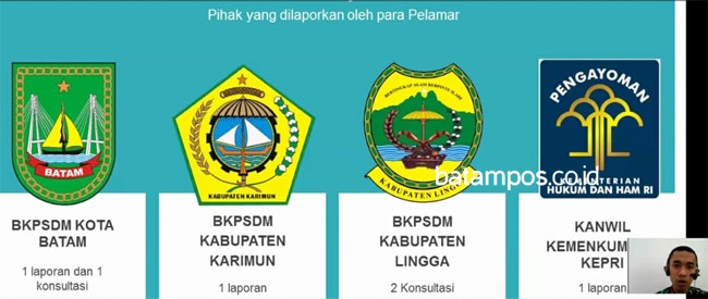 “Ada empat terlapor yang dilaporkan oleh pelapor. Pertama itu BKPSDM Kota Batam, kemudian BKPSDM Kabupaten Karimun, BKPSDM Kabupaten Lingga dan Kanwil Kemenkumham Kepri,” ujarnya dalam konferensi perse secara virtual, Senin (9/8/2021).
