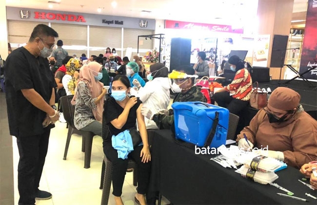 batampos.co.id – Kegiatan vaksinasi dosis kedua yang digelar pada hari kedua bagi pelaku pariwisata, budaya, dan ekonomi kreatif (ekraf ) yang digelar Pemko Batam melalui Dinas Kebudayaan dan Pariwisata (Disbudpar) Batam di Kepri Mall berjalan lancar, Jumat (20/8/2021).
