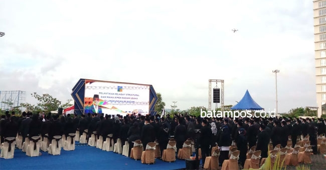Proses pelantikan pejabat baru di lingkungan BP Batam yang dilaksanakan di halaman parkir kantor BP Batam. Foto: Dhiyanto/batampos.co.id