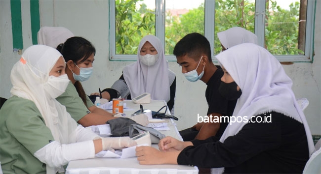 batampos.co.id – Ratusan santri di Pondok Pesantren Ya Husnayah Hidayatul Mubtadi’in, Tanjung Riau, Sekupang, Kota Batam divaksinasi Covid-19, Kamis (2/9/2021).