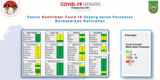 Data Covid-19 di Kota Batam hingga Minggu (19/9/2021), jumlah kasus positif tercatat sebanyak 25.727 orang.