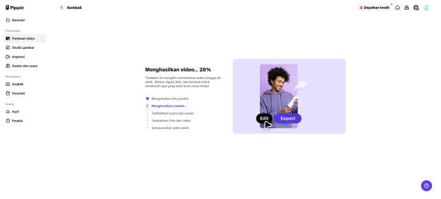 Otomatisasi di Pippit memangkas jam kerja desain manual. Namun, kamu tetap bisa menyesuaikan gaya, animasi, dan tata letak sesuai selera. Tanpa pengetahuan desain pun, hasil videonya tetap terlihat profesional. Dengan membuat video dengan AI, cerita visual bisa ditingkatkan jadi video berdampak besar untuk presentasi atau media sosial. AI menangani transisi, caption, dan sinkronisasi sehingga kamu bisa fokus pada konten, bukan teknis. Dukungan multi-bahasa membuat komunikasi lintas negara lebih mudah, sementara visual interaktif memperkuat keterlibatan audiens.