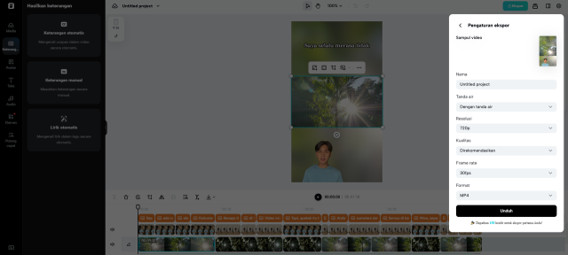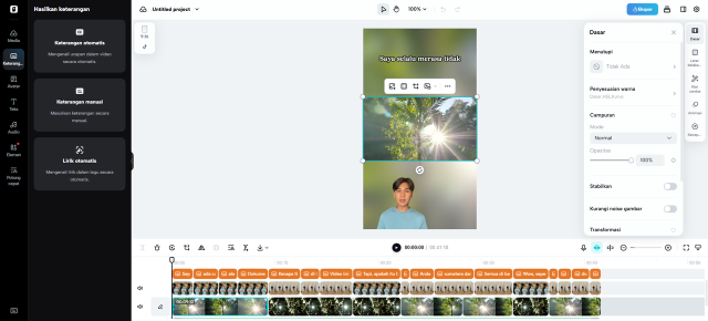 Di editor, kamu bisa mengubah caption, menyesuaikan warna, ukuran, atau tata letak teks. Tambahkan filter, efek, musik latar, atau hapus latar belakang sesuai kebutuhan. Masukkan grafik, ikon, atau animasi infografik agar data terlihat lebih menonjol.