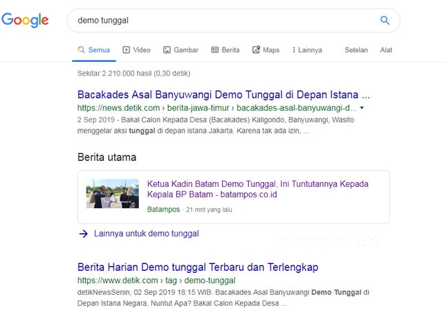 Selain Ketua Kadin Batam, demo tunggal pernah dilakukan Bakal Calon Kepala Desa (Bacakades) Kaligondo, Banyuwangi, Wasito pada 2 September 2019 lalu.