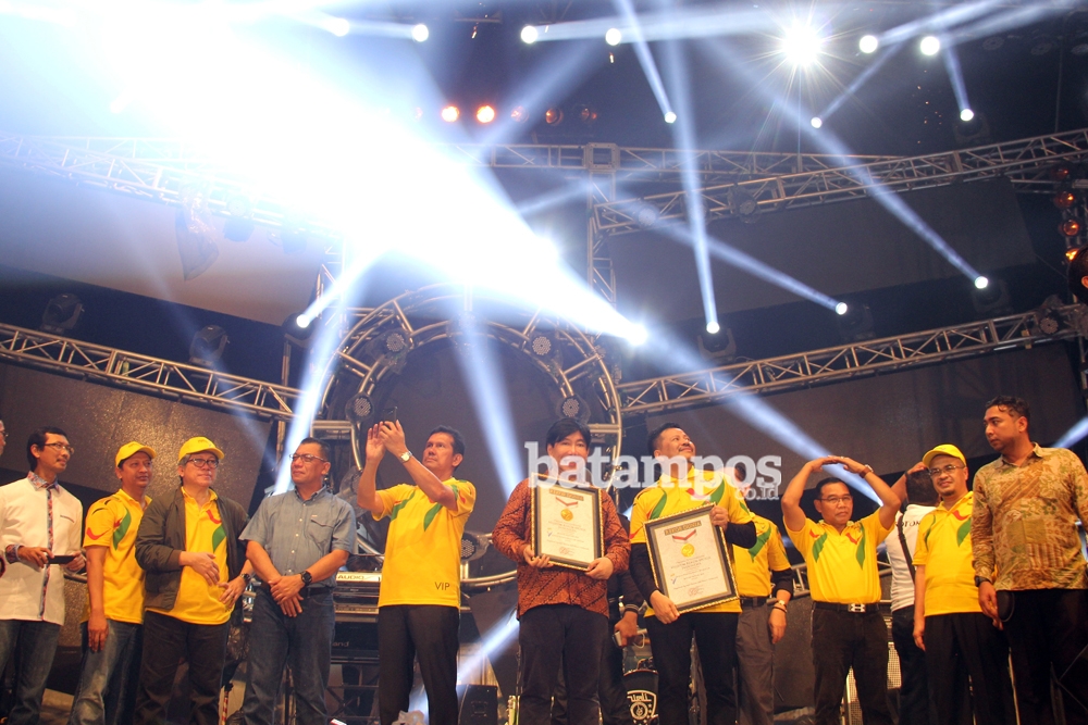 Piagam penghargaan MURI langsung diserahkan usai acara oleh Senior Manager MURI Yusuf Madri kepada Kepala BP Batam Lukita Dinarsyah Tuwo selaku penggagas acara tersebut, tadi malam.