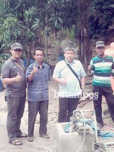 Pimpinan Cabang BNI Tanjungbalai Karimun Irwansyah Kesuma Putra (dua dari kanan) foto bersama warga Desa Teluk Kiambang usai pembuatan sumur bor melalui dana CSR BNI. F. BNI Cabang Tanjungbalai Karimun untuk Batam Pos.