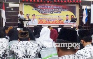 Bupati Karimun Aunur Rafiq membuka konferensi kerja II PGRI Karimun, Senin (2/10). F Tri Haryono/Batam Pos.