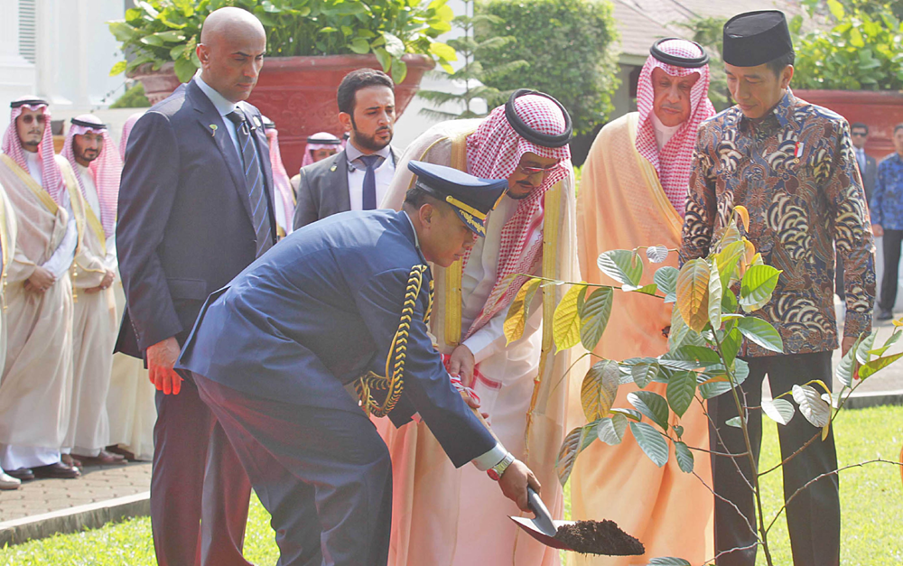 Usai pertemuan, Raja beranjak ke halaman dalam kompleks Istana Kepresidenan untuk menanam pohon secara simbolis. Acara penanaman pohon itu seharusnya dilakukan di Istana Bogor sehari sebelumnya, namun batal karena hujan. Sebelum masuk lokasi penanaman pohon, Presiden mengajak Raja Salman berkeliling kompleks Istana menggunakan boogie car. Seperti biasa, Presiden Jokowi yang mengemudikan.