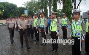 Kapolres Karimun, AKBP Armaini melakukan pemeriksaan pasukan dalam apel gelar pasukan tanda dimulainya Operasi Simpatik Seligi 2017. Foto: Sandi/batampos.