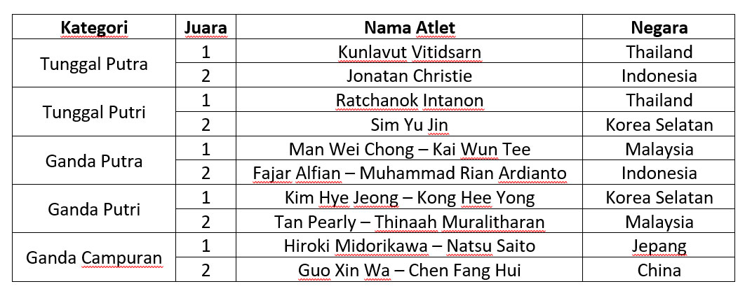 batampos – Pada ajang turnamen bulu tangkis internasional Daihatsu Indonesia Masters 2025, Indonesia raih runner up di laga final yang berlangsung di Istora Senayan Jakarta pada 26 Januari 2025. Kedua runner up dari Indonesia diraih oleh Jonatan Christie pada kategori tunggal putra, dan Fajar Alfian – Muhammad Rian Ardianto pada kategori ganda putra.