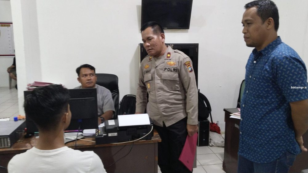 YCW saat menjalani pemeriksaan di Polsek Sekupang. (F.Rengga Yuliandra)