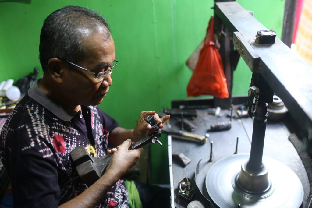 Di kalangan penggosok intan, Muhyan terbilang senior. ”Saya sudah 40 tahun jadi penggosok,” tuturnya.
