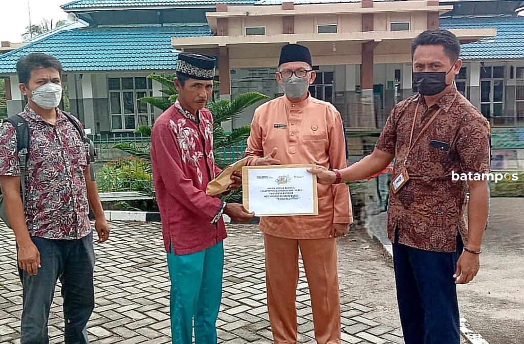 Koordinator PPM wilayah Kepri dan Riau Eka Budhy Susanto menyerahkan bantuan renovasi Mushala Nurul Iman pantai Ketapang desa Kundur