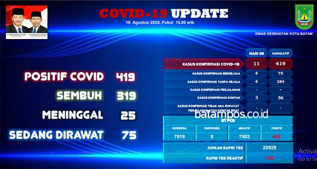 Dengan adanya penambahan tersebut total pasien Covid-19 di Kota Batam saat ini berjumlah 419 orang.