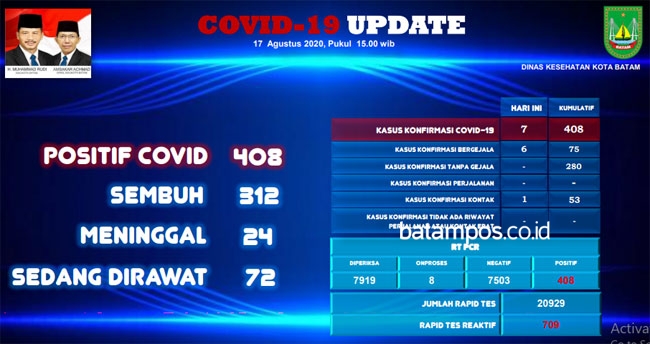 Ketua Gugus Tugas COvid-19 Kota Batam, Muhammad Rudi, melalui pernyataan tertulisnya menyebutkan, data tersebut merupakan hasil pemeriksaan swab oleh Tim analis BTKLPP Batam berdasarkan hasiltemuan kasus baru dan hasil tracing di Kota Batam.