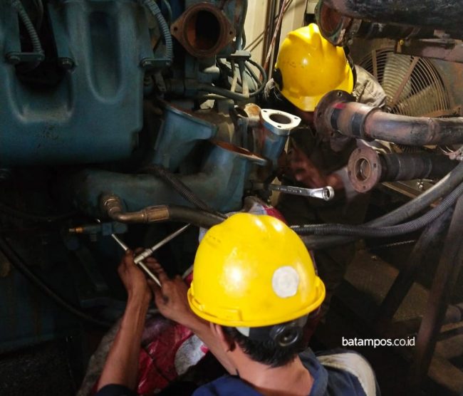 Petugas PLN melakukan pemulihan mesin pada Pembangkit Listrik Tenaga Diesel ( PLTD) di Pasir Manang Kabupaten Kepulauan Anambas, Jum’at (21/8/2020). Foto: Istimewa untuk batampos.co.id